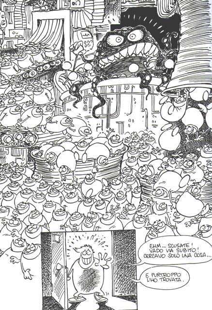 Trionfano anche i toni ironici, come nel caso di Uno di tanti o Fumetti, scritti entrambi da Tito Faraci. Silvia Ziche e Marco Corona riempiono le loro vignette di personaggi immersi in una lotta di fitta dialettica, in cui chi lancia l’allarme non ottiene la giusta considerazione e l’ascolto adeguato che meriterebbe. Entrambi hanno uno stile molto efficace: quello della Ziche è il monocromo consueto, con le figure stilizzate, che si muovono con grande dinamismo tra le vignette, mentre Marco Corona privilegia l’uso di un colore brillante, i personaggi sono trasformati in animali, cosa che contrasta con i toni dissacranti dei dialoghi.