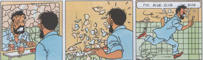 L’effetto del cannone sonico di Girasole sconvolge Haddock. Tintin e l’affare Girasole, pag. 10.