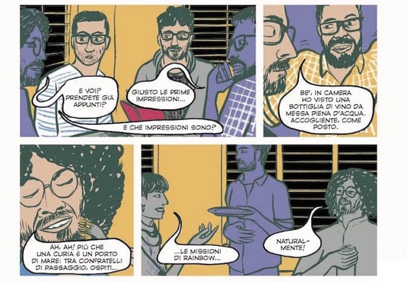 Un’immediatezza che coinvolge anche i disegni dai colori irreali e sgargianti, quasi a voler catturare la distanza immensa che corre tra quel tipo di esistenza e il nostro vivere quotidiano. Tavole che rifuggono il realismo ma che restituiscono pienamente una dimensione che, una volta conosciuta, non può più essere negata.