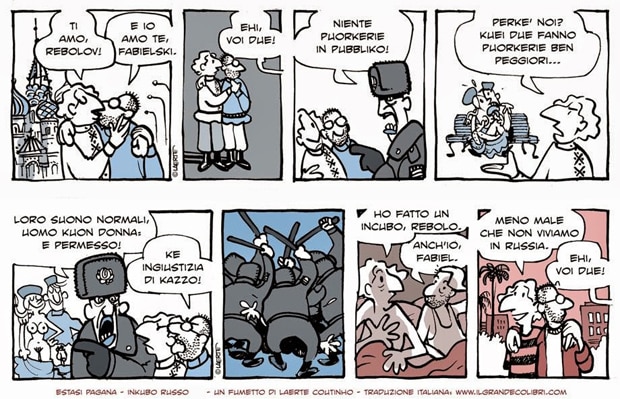 Non è infatti difficile immaginare come un lettore che abbia già consolidati pregiudizi, leggendo dei fumetti di questo tipo, divertenti ma privi di un messaggio più profondo e diretto, possa vedere confermata l’idea che aveva in partenza di queste strane creature riunite sotto l’oscuro acronimo di LGBT. E questo nonostante vengano proposti, da una sorta di pubblicità ingannevole, come opere che contribuiscono a sensibilizzare verso la tolleranza e l’affermazione dei diritti civili. Cosa che di fatto non sono.