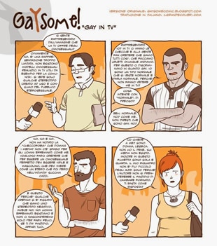 Fare dell’ironia, sdrammatizzare il peso di anni di lotte per la rivendicazione del diritto all’esistenza (perché di questo si tratta) che hanno condotto a processi, dibattiti parlamentari, incarcerazioni, pestaggi, omicidi, suicidi, è più che giusto. Specie se di autoironia si tratta, specie se gli autori di storie così leggere e a tratti scurrili sono parte integrante di quell’universo in lotta. Ciò che è scorretto è l’alimentazione volontaria o involontaria di uno stereotipo (nel quale, va detto, in molti si sentono al sicuro e che scientemente tendono per questo a riprodurre), l’incapacità di inserire in tanta comicità un momento di riflessione se non perfino di denuncia, l’ignorare che di omoaffettività si può parlare non solo in riferimento alla ricerca spasmodica di un approccio sessuale, ma anche di una vicinanza affettiva, anche nell’ottica di una quotidianità che veda coinvolti amici e familiari. Tutto questo nel solco di quella normalità che da un lato, quello degli omofobici, viene richiesta come condizione necessaria a omologarsi e integrarsi nel tessuto sociale, e dall’altro, quella di chi viene considerato “diverso”, è vista come ovvia condizione naturale di cui si rivendica il riconoscimento.