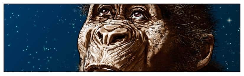 In questo albo sceneggiato da Patrick Norbert e illustrato da Tanino Liberatore, edito nel 2007 in Francia dopo una gestazione lunga dieci anni, si ipotizzano alcune risposte a queste domande seguendo il cammino dell’ominide ancora in vita. Un breve racconto che la ritrae appartenente a una specie che sta per essere superata da altre più evolute e intelligenti, ma al tempo stesso in qualche modo cosciente che dentro di sé esisteva quella scintilla che, generazione dopo generazione, si sarebbe manifestata pienamente nell’Homo Sapiens.