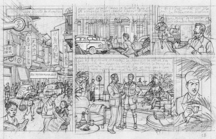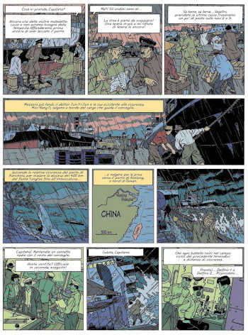 Teun Berserik e Peter Van Dongen contribuiscono al tono dell’avventura con ricchi sfondi urbani e naturalistici, seppur non dettagliati. L’esperienza di lettura deve molto alla resa degli ambienti, che ricostruisce un mondo lontano con una concretezza che favorisce l’immersione. Sequenze esemplari sono quella del trasporto della collezione del Museo Nazionale Cinese a Taiwan, che si svolge da Nanchino lungo il fiume Yangtze in mezzo a una violenta burrasca; l’attraversamento di Hong Kong da parte di Mortimer, occasione per mostrare panorami e scorci sia della zona centrale della colonia, ricca di palazzi imponenti, sia di quella popolata dalle case galleggianti e abitata dalla parte più povera ed emarginata della popolazione, e quello che si svolge a Londra, fra il British Museum, un albergo di prestigio e le vie, che ci dona uno sguardo sulla Capitale nel dopoguerra. Anche sotto questo aspetto, siamo nel pieno rispetto della tradizione, e la messa in scena soddisfa così l’appassionato che si gode le vedute urbane e naturalistiche. A lasciare perplessi è la resa dei protagonisti in certi momenti, nei quali i loro volti mostrano un appesantimento dei tratti, che li fa apparire certamente molto umani, così da sottolinearne la normalità, ma fin troppo invecchiati.
