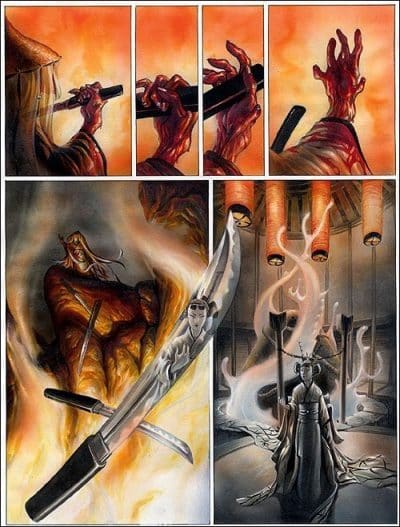 Un ottimo esempio è proprio La leggenda delle Nubi Scarlatte, che Magic Press ripropone in versione “L’integrale”, con un volume unico brossurato che sarà il primo di una serie: l’editore romano ha infatti annunciato altri due integrali, che raccoglieranno le serie ambientate nello stesso universo narrativo, uno ad opera nuovamente del solo Tenuta, La Maschera di Fudo, e una in collaborazione con altri autori, Izuna. La serie principale era già stata proposta in Italia in due volumi cartonati per Comma 22.