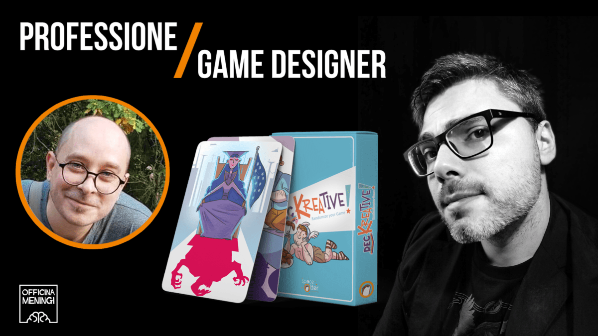 Professione Game Designer è un format dell’agenzia creativa Officina Meningi diretta da Valentino Sergi, giornalista e autore di GDR, giochi in scatola e librogame. Valentino alterna alla carriera autoriale quella di consulente di marketing editoriale e formatore per varie accademie, come Scuola Internazionale di Comics, sviluppando corsi e concorsi per autori di giochi.