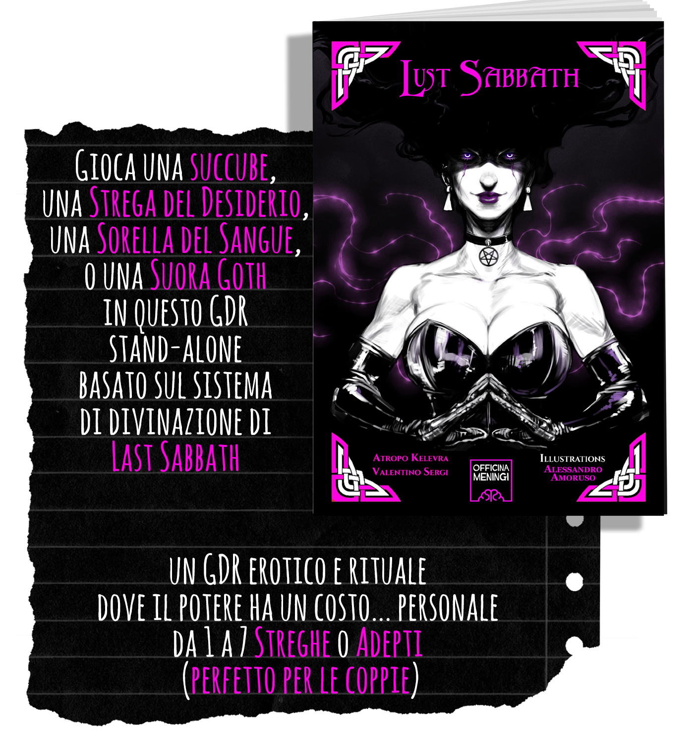 Lust Sabbath è un GDR erotico e rituale basato sul sistema di Gioco di Last Sabbath – il GDR delle Streghe dove il potere richiede un prezzo e la narrazione è guidata dalla lettura dei Tarocchi senza un Master.
