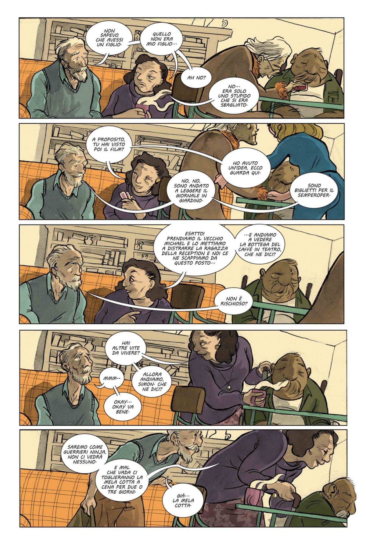 E’ l’età dei protagonisti che viene narrata, in balia di eventi che oscillano tra la tragedia di un preciso e purtoppo contingente momento storico, fatto di follia, e le piccole grandi tragedie di tutti i giorni, ma è tutt’altro che un romanzo a fumetti nichilista! La luce che filtra attraverso le tavole, i dialoghi, le tenerezze di cui sono pregni i personaggi nella loro quotidianità, ci rivelano un ottimismo e una fiducia verso le piccole cose della vita, i luoghi, gli affetti, i legami, i ricordi…