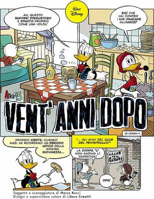 In Vent’anni dopo, per esempio, si ragiona sul tempo che passa e come possa cambiare o meno, tanto o poco, le persone nel corso degli anni: tematica assai delicata, nel fumetto Disney, ma mettendo a confronto i ragazzini protagonisti con alcuni adulti – Paperino, Paperoga, Zio Paperone e Gastone – il risultato non cozza contro le “regole temporali” dell’universo disneyano e regala una trama ricca di spunti, che non si esauriscono dopo l’ultima tavola.