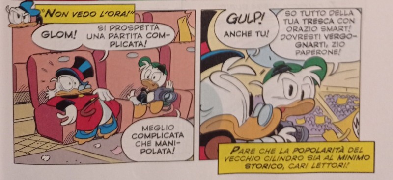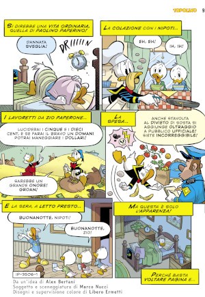 Una soluzione non certo inventata da Nucci, nemmeno nel solo ambito disneyano, e che nell’ultimo decennio in particolare ha visto diversi autori rompere questo tabù: ma nessuno con l’insistenza dell’autore di Castiglione dei Pepoli, che ricorre a tale espediente in molte occasioni.