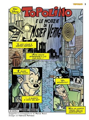 La prima storia, Topolino e le notizie di Mister Vertigo, esce sul settimanale ad agosto 2020, e rappresenta sostanzialmente il primo grande evento dell’autore, più o meno in contemporanea con Il torneo delle 100 porte, per il quale rimando al capitolo successivo.