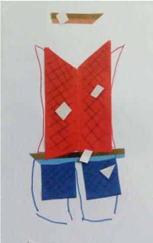 b. una trasformazione del costume/simbolo del personaggio legata alla nuova caratteristica (con uso di materiale da disegno e collage);
