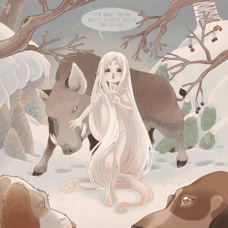 Il segno morbido e chiaro non contorna solo gli esseri umani, ma anche la flora e fauna, che beneficia di un tratteggio distribuito oculatamente sulle pellicce. Se la chioma delle fanciulle assume tinte fantasiose e artificiali, il manto degli animali asseconda la realtà con i colori tipici di ciascuna specie, mentre le creature inventate dall’autrice sorprendono perché celano un’indole tutt’altro che innocua sotto un’esteriorità sobria e rassicurante.