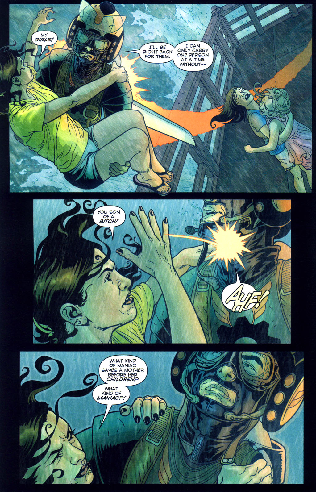 Questa visione “viziata” della figura dell’eroe è ben restituita nel racconto delle gesta della Grande Macchina. I vari flashback, più o meno articolati e lunghi, nei quali viene narrata la carriera del vigilante ci mostrano un gruppo improvvisato di giustizieri animato da grandi aspirazioni, molto entusiasmo e poco altro. Le sortite di Hundred sono maldestre, l’equipaggiamento di cui si dota è realizzato da Kremlin (è stato Harris, il disegnatore a suggerire questa soluzione) ed è spesso inaffidabile. Assistiamo ai tentativi di un uomo comune di occuparsi di varie emergenze, dallo scippo al tentativo di suicidio, senza avere una minima preparazione o attitudine. Emblematica è la sequenza dell’episodio numero 15 USA (in Italia nel volume 3 Fatti contro finzioni) in cui la Grande Macchina, avvistata una famiglia in pericolo a bordo di una nave, privilegia il salvataggio della madre piuttosto che quello delle due sue bambine.
