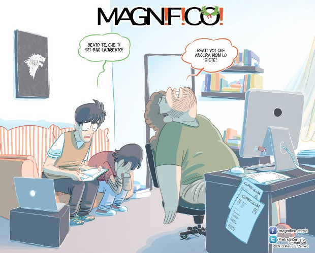 Sempre per il web è Magnifico!, serie di strisce che raccontano la vita di tre coinquilini universitari e che ha goduto anche di un’edizione cartacea grazie a Manfont.