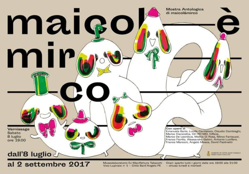 Quindi vi invitiamo a MAICOL È MIRCO Mostra antologica di maicol&mirco – 8 luglio / 2 settembre 2017 – Vernissage sabato 8 luglio h19