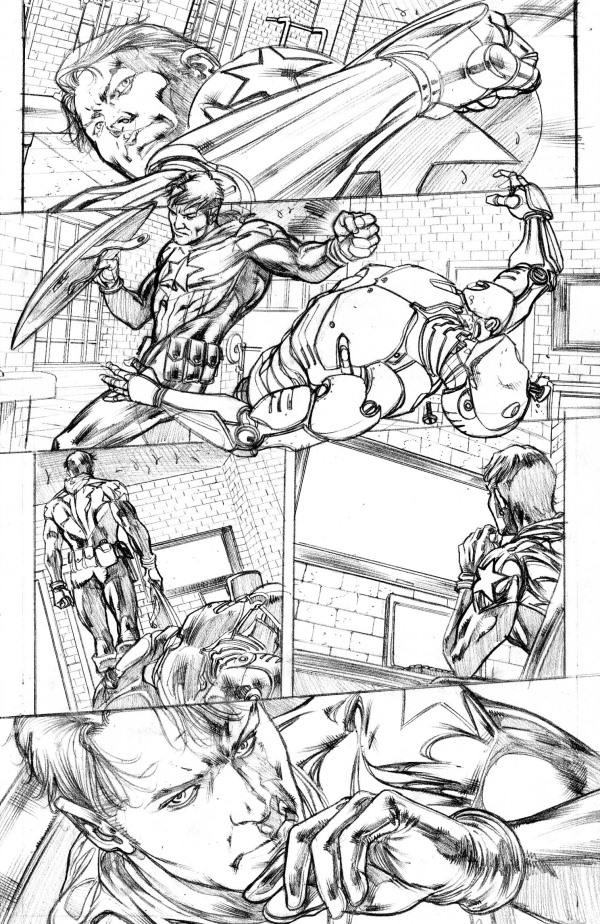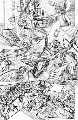 Sì, naturalmente ho osservato il lavoro degli altri artists che hanno lavorato su Cap. Fra tutti devo dire che Jackson Guice e Steve Epting sono quelli che ho preferito. Detto questo, colui a cui devo il mio reale interessamento a Capitan America è assolutamente il grande Bryan Hitch. Con Ultimates ha infuso nuova linfa grafica nel modo di rappresentarlo. Fantastico!