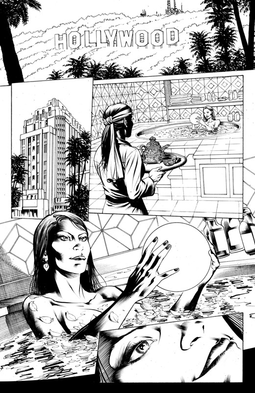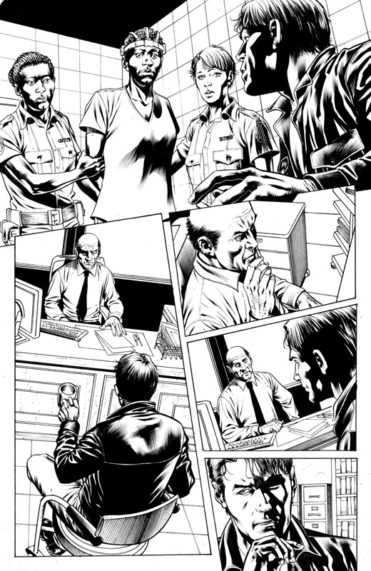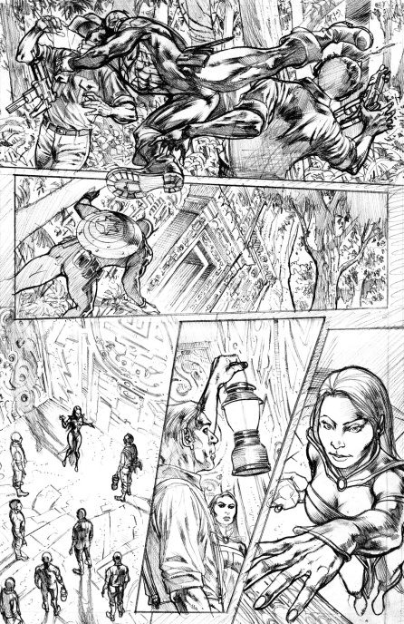 A questo punto devo dire però che ho avuto la fortuna di entrare in contatto con un mio ex-studente, Patrick Piazzalunga, che proprio nel periodo in cui ero tornato a lavorare da solo era in cerca di lavoro. Ho iniziato a farlo provare sulle mie matite, indirizzandolo verso lo stile che stavo facendo sempre più mio e alla fine ci siamo ritrovati a condividere la fase delle chine. Nel senso che, come assistente, Patrick fa una parte del lavoro a china e io il rimanente. Il tutto si fonde in un lavoro finale che diventa omogeneo (o almeno spero sia questo il risultato). Detto questo, devo dire che la fase del ripasso a china è divenuta con il tempo sempre più interessante, al punto che, molte volte, ci sono alcune parti del lavoro che abbozzo solamente a matita e disegno nella versione definitiva direttamente a china. Facendo anche questa fase del lavoro è divenuto davvero piacevole vedere come il grigio della grafite, divenendo nero pieno, acquisti una forza incredibile!