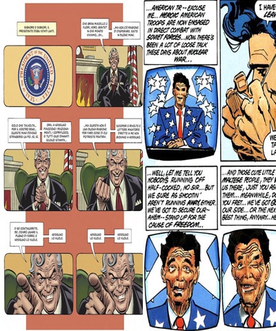 È impossibile non vedere nell’ammiccante presidente Rexall il proseguimento di un discorso già avviato ne Il Ritorno del Cavaliere Oscuro con una durissima critica alla politica reaganiana, alla sua propaganda, al suo interventismo, all’oppressione di qualsiasi manifestazione politica “ostile” sebbene non violenta e soprattutto alle devastanti politiche sociali.