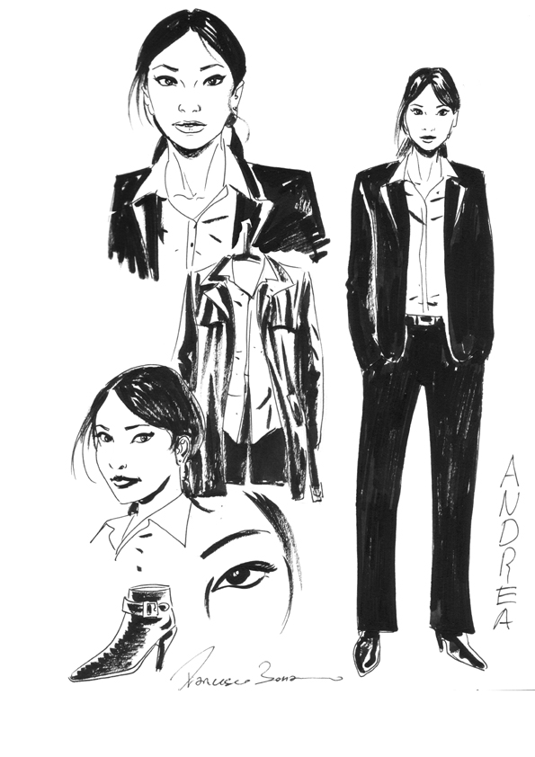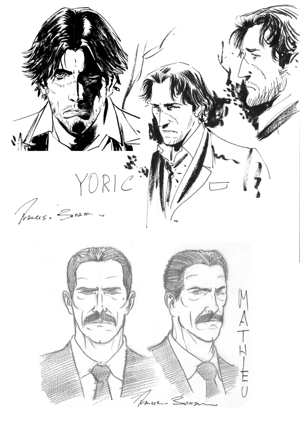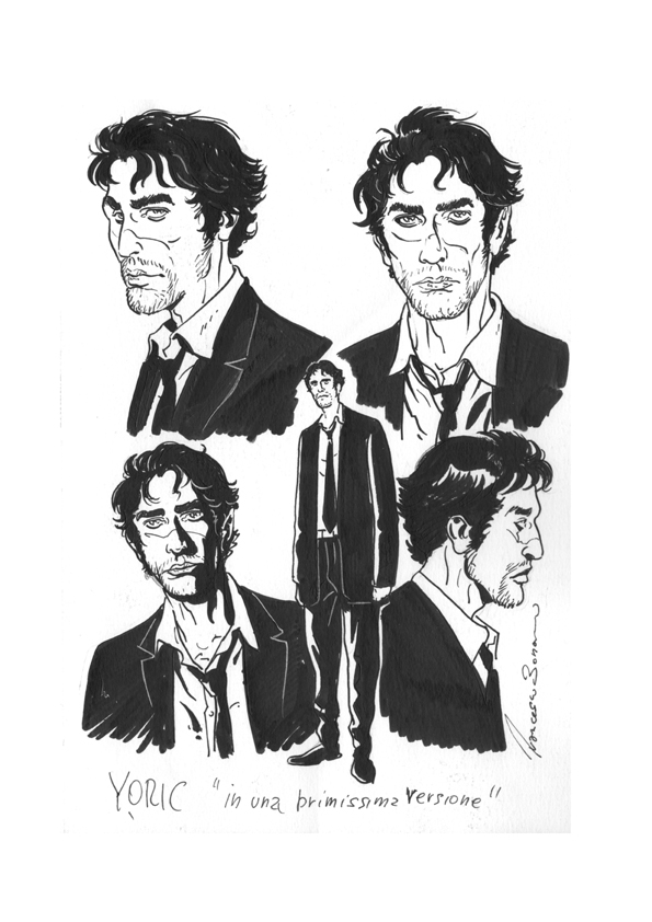 Rita e Silvia mi hanno fornito una descrizione scritta e dettagliata di ogni personaggio con accanto un rimando a un volto reale, quasi tutti i personaggi dunque somigliano più o meno al loro riferimento di base tranne Yoric Malatesta (a proposito, se siete curiosi potete visitare il blog del Dr. Morgue dove le autrici svelano qualche somiglianza) [dottormorgue.blogspot.com, n.d.r.]. Le autrici hanno immaginato questo particolarissimo personaggio con un viso alla Daniele Liotti, mentre io l’ho accostato più su un tipo alla Vincent Cassel, ma la verità è che Yoric nella mia testa ha subito rivendicato una sua precisa fisionomia. Ho proposto a Rita e Silvia una mia interpretazione che ha incontrato il loro apprezzamento e da quei primi bozzetti si è sviluppato il personaggio per come lo vedete adesso e devo dire che tutto sommato è abbastanza fedele a quello originario.