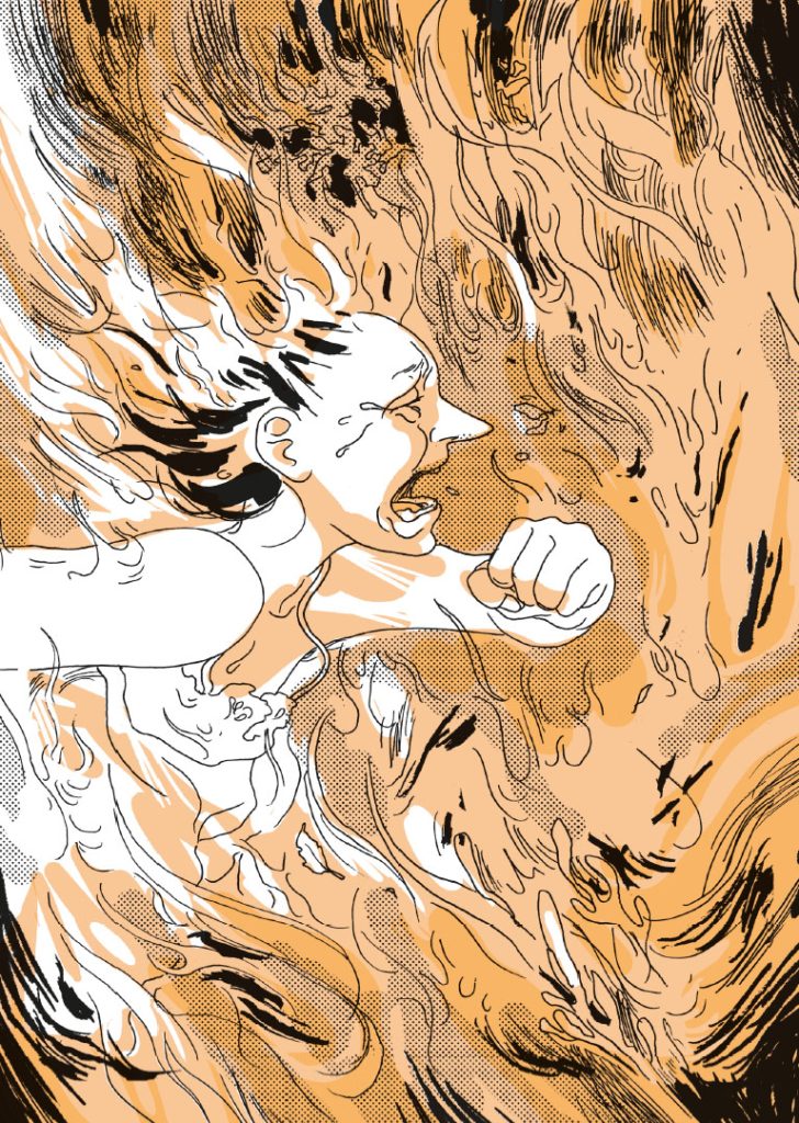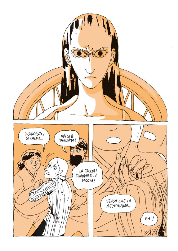Il tratto pulito e definito, quasi tranquillizzante dell’autrice, che rimanda alla cifra stilistica di autori come Manuele Fior e Marino Neri, definisce ancora meglio la cupa storia di Rita e Francesca, acuendo la durezza delle situazioni presenti con un contrasto ancora più tagliente e sconvolgente. Davvero bella, originale, ben studiata la costruzione delle tavole, delineate da una regia quasi perfetta con singoli colori per pagina e un utilizzo mai invasivo dei retini. Un’altra dimostrazione del talento innato della Biasio.