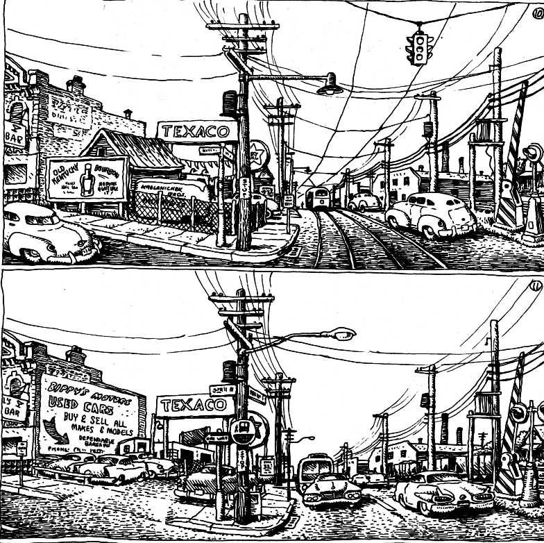 Ware si riferisce soprattutto a Breve Storia dell’America, solo quattro pagine, mute, con un’unica fissa inquadratura di un paesaggio americano: dalla campagna incontaminata lo si vede mutare, vignetta dopo vignetta; anche senza vederla, è palese che ci sia la mano dell’uomo dietro tutto questo, che come un parassita lentamente invade e corrompe. Al contrario delle pagine dove l’artista americano parla in prima persona, in queste non trapela esplicitamente un giudizio o la visione dell’autore: c’é solo lo sguardo di un osservatore distante, ma rassegnatamente partecipe, in una sequenza di immagini che fanno di ogni vignetta un verso di una poesia che descrive un secolo di storia americana.