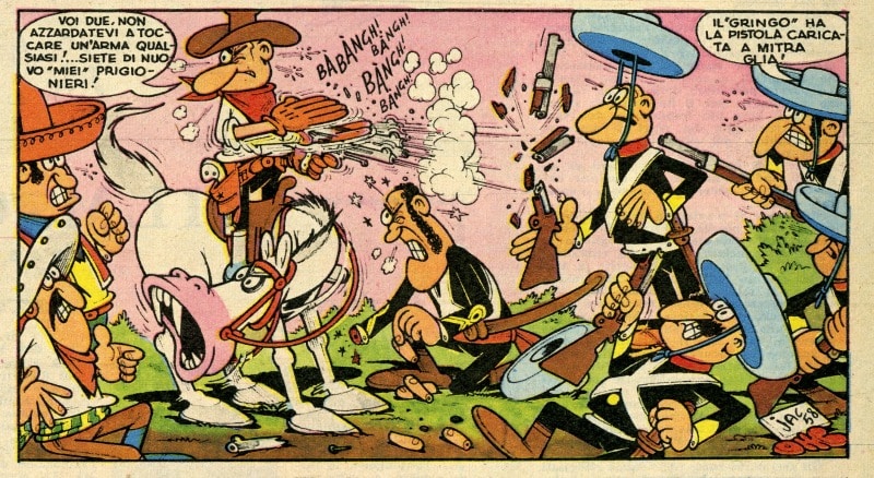 Oltre a Dan Dare, da Eagle provengono molte altre serie a fumetti, come il cowboy Jeff Arnold, Luck della Legione Straniera e Kid Tempesta, quest’ultimo realizzato in Inghilterra dall’italiano Giorgio Bellavitis (destinato a diventare un architetto importante, soprattutto per la città di Venezia). Ma già sul primo numero, in ultima pagina, a colori, fa la sua comparsa un nuovo fumetto, realizzato da uno degli autori italiani più famosi dell’epoca (e di tutti i tempi), strappato dal Giorno al settimanale cattolico Vittorioso. Il nuovo personaggio si chiama Cocco Bill e l’autore è Benito Jacovitti. Per il nuovo giornale, Jacovitti non crea solo il suo famosissimo cowboy bevitore di camomilla, ma molti altri personaggi come Tom Ficcanaso e Gionni Galassia, e disegna alcuni dei suoi celebri “paginoni”, panoramiche dense di personaggi surreali e situazioni assurde. Oltre a Jacovitti, Il Giorno dei Ragazzi pubblica fumetti realizzati da altri importanti autori italiani, come il disneyano Giuseppe Perego, con la serie umoristica Poldo e Poldino (scritta dallo stesso Andrea Lavezzolo), Nevio Zeccara con avventure di fantascienza e Bruno Bozzetto, che firma alcune divertenti storielle con i protagonisti dei suoi film d’animazione West & Soda e Vip, mio fratello superuomo.