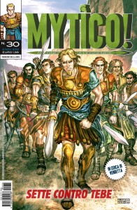 Il numero 30 del settimanale Mytico! si apre dietro la ormai solita spettacolare copertina di Paolo Martinello presentandoci i sette condottieri che cercarono di prendere la città di Tebe. Nel racconto di Diomede al compagno di battaglia Leandros c’è sia la storia dei “primi” sette, il padre Tideo ed altri sei valorosi, destinati a soccombere, sia quella dei loro figli, fra i quali Diomede stesso, che invece portarono a compimento la presa della città.