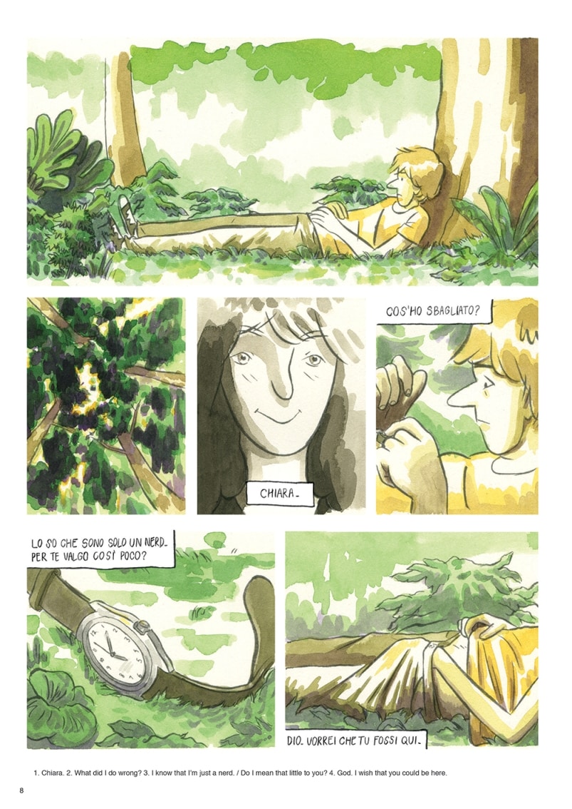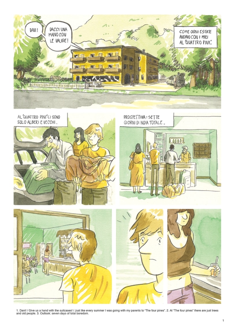Daniele tra gli alberi è il secondo titolo che come La medusa ci parla di vacanze, innamoramento e scoperta sessuale. Daniele è in montagna con i genitori per soffocare una delusione amorosa e per comprendere cosa non ha funzionato. L’ancestralità della natura gli fa scoprire sentimenti inattesi, gli impulsi romantici si mescolano alle pulsioni erotiche. Grazie alla leggerezza del disegno, il racconto ci immerge nell’intimità e nei timori di un’età in cui tutto sta per cambiare, dove la sensazione di fallimento è in grado di manifestarsi anche nel silenzio delle fronde irradiate dal sole.