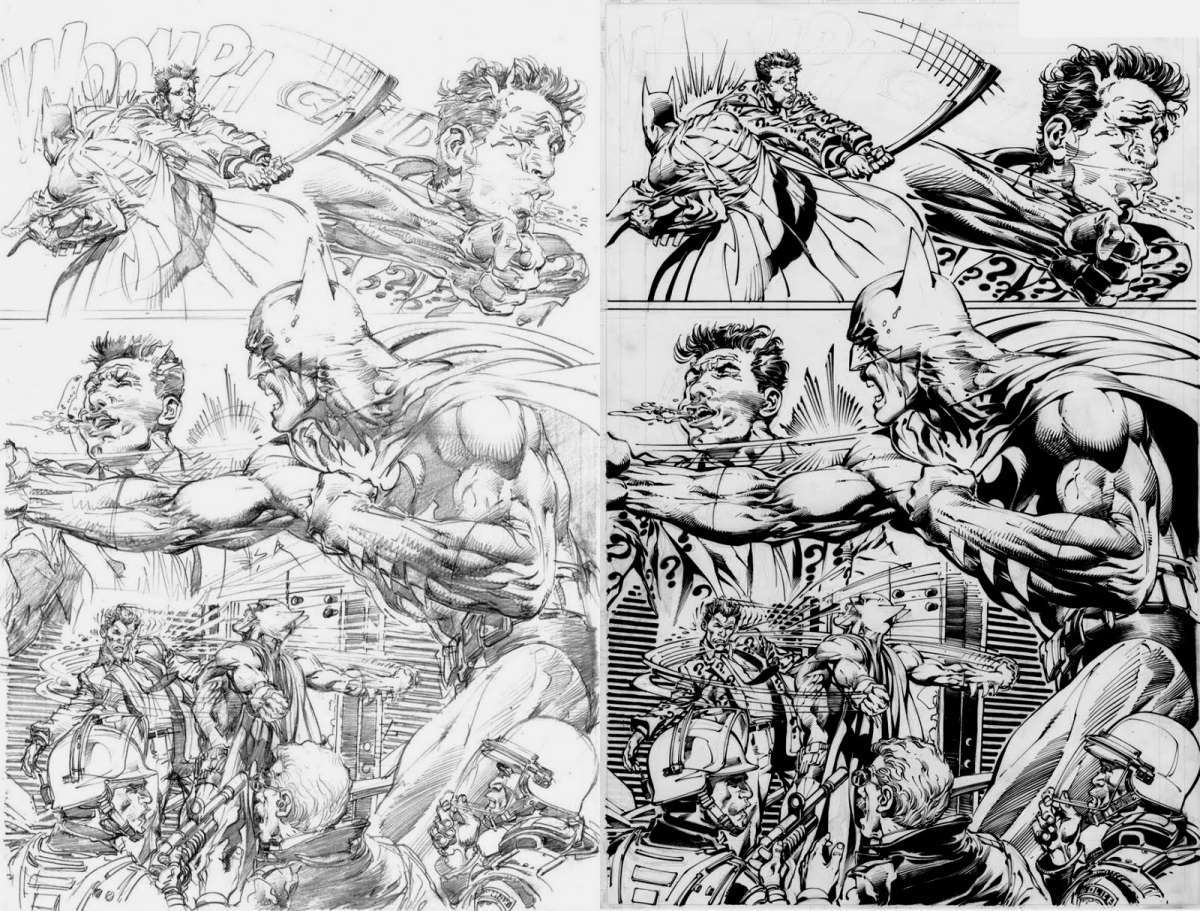 Neal Adams abbozza un Batman a matita, qui.