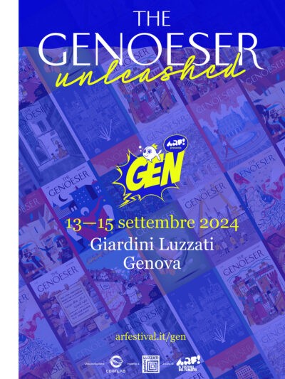 13, 14 e 15 settembre 2024: ARF!, CDM LabGiardini Luzzati presentano nel centro storico di Genova, durante M.U.R.A., GEN!, il nuovo Festival prodotto da CDM Lab insieme a Giardini Luzzati, con la direzione artistica a cura di ARF! per un evento interamente dedicato al mondo del Fumetto!