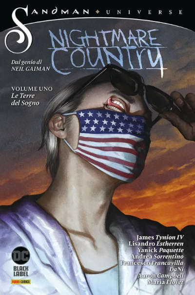 Flynn è il personaggio al centro dell’intreccio di Le Terre del Sogno, primo arco narrativo di Nightmare Country, serie DC/Black Label della collana Sandman Universe firmata da James Tynion IV (testi), Lisandro Estherren (disegni), Patricio Delpeche (colori), Simon Bowland (lettering originale, riportato nella versione italiana di Panini Comics da Antonio Esposito), affiancati da una serie di artisti che realizzano piccoli inserti in ciascun capitolo. Intreccio che appare fin da subito complicato, ricco come è di tanti elementi che entrano in scena pagina dopo pagina senza collegamento esplicito: due strani sicari logorroici, studenti che vivono alla giornata, sogni con il personaggio che perseguita Flynn, i cui sognatori sono morti in modi orribili, beghe fra gli Eterni e tramatori di complotti per cambiare il mondo. Il Corinzio che agisce in queste pagine è la seconda versione dell’incubo creato da Morfeo, Signore del Sogno, che i lettori di Sandman incontrarono nel ciclo Le Eumenidi; come in quel racconto, anche qui il personaggio si muove come una sorta di investigatore da hard boiled, in un’indagine che però questa volta riguarda il rapporto fra la propria identità attuale e quella della sua prima versione, colpevole di aver tradito i principii del Sogno e per questo distrutta da Morfeo.