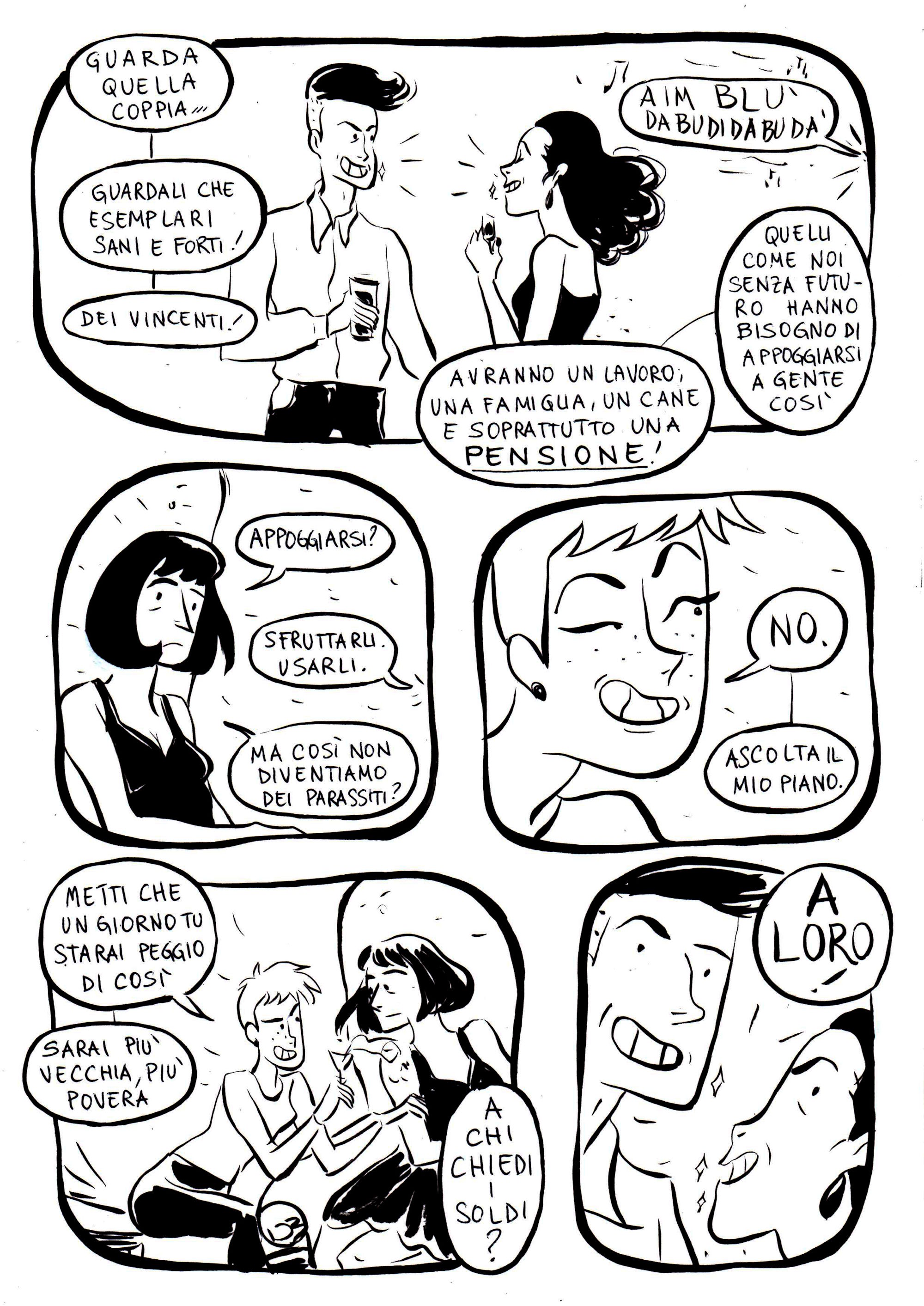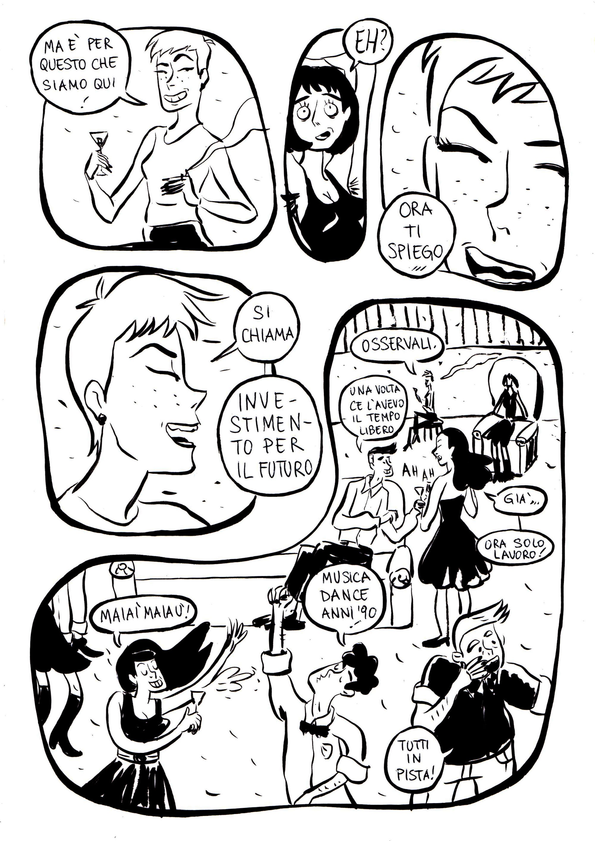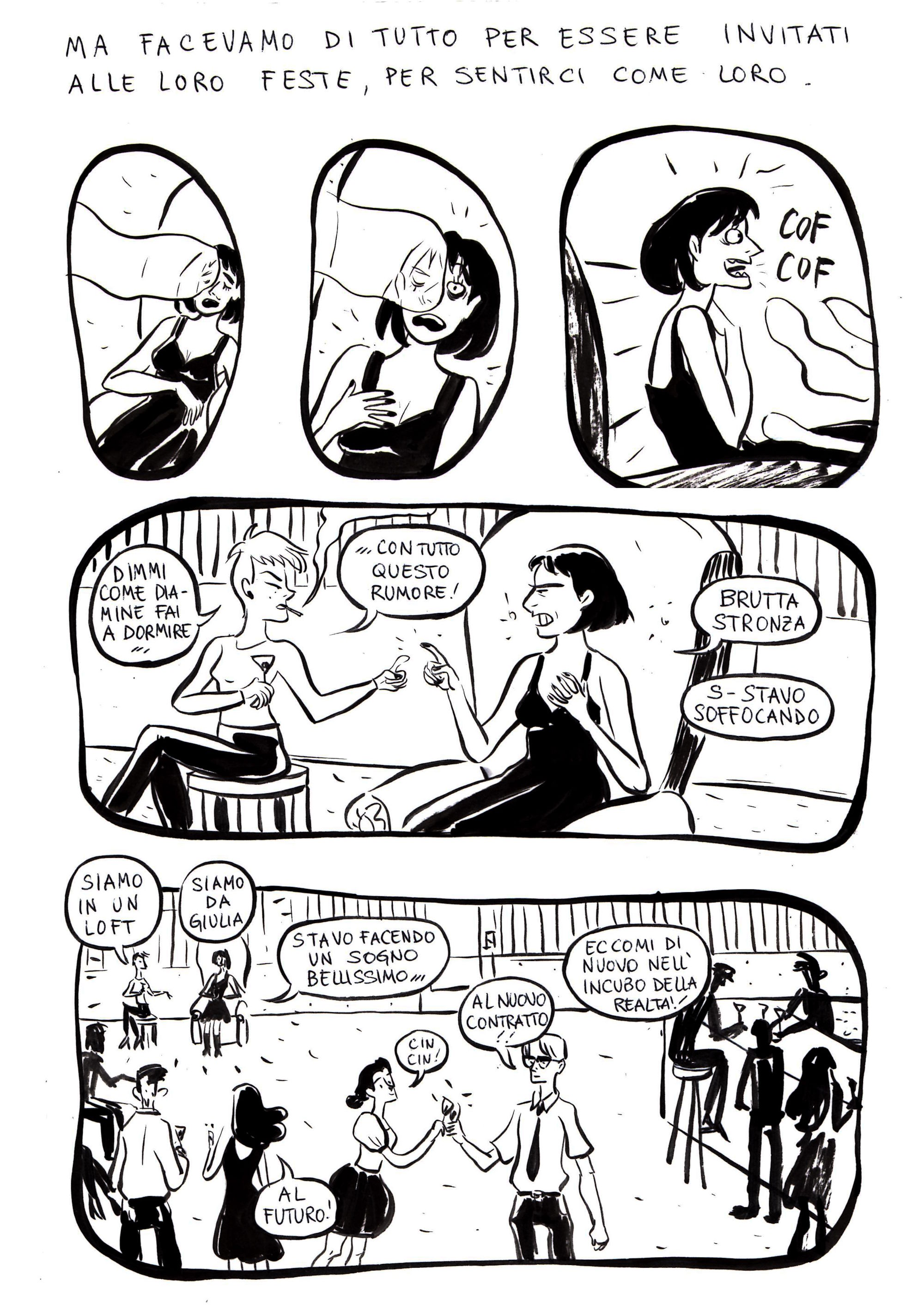 Eppure, insieme alla malinconia, sento anche fiducia. In dieci anni non sono solo invecchiata: sono cresciuta, soprattutto professionalmente. Molti amici hanno cambiato vita, alcuni sono riusciti a stabilizzarsi, altri se ne sono andati dall’Italia. Io mi sento ancora in bilico, ed è forse per questo che questo fumetto mi è ancora così vicino.