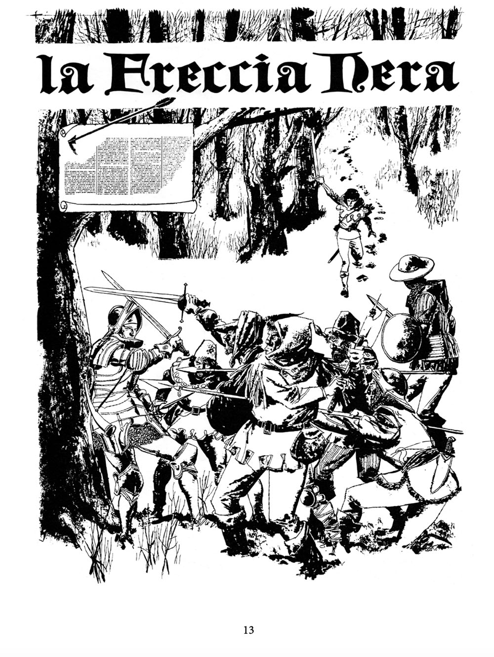 Robert Louis Stevenson, scrittore, drammaturgo e poeta scozzese di epoca vittoriana, è autore di diversi classici della letteratura. Si ricordano, tra gli altri, L’isola del tesoro, Lo strano caso del dottor Jekyll e del signor Hyde e La Freccia nera. Quest’ultimo romanzo, di genere storico e avventuroso, ha conosciuto diverse trasposizioni cinematografiche e televisive di successo. E il maestro Dino Battaglia ne ha realizzato una meravigliosa versione a fumetti su testi di Danilo Forina, pubblicata a puntate sul Corriere dei piccoli nei primi anni Sessanta.