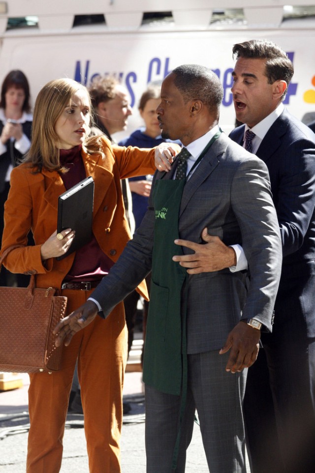 Lo stesso Foxx è stato ritratto in seguito sul set nella zona di Tribeca, intento a girare una sequenza riguardante una visita del suo personaggio a una mensa per i poveri in cui era presente anche Adewale Akinnuoye-Agbaje, nel film lo chaffeur di Stacks. Potete vedere le immagini di seguito.