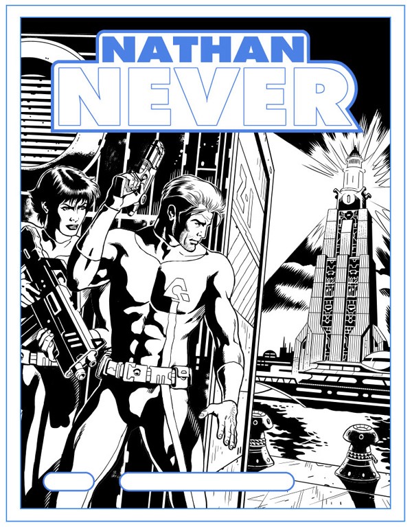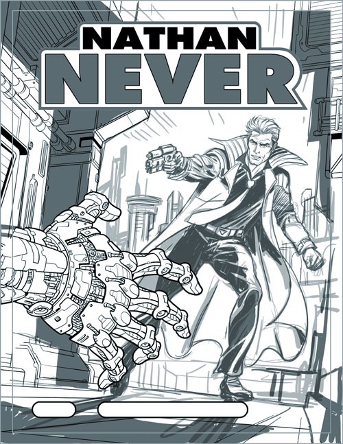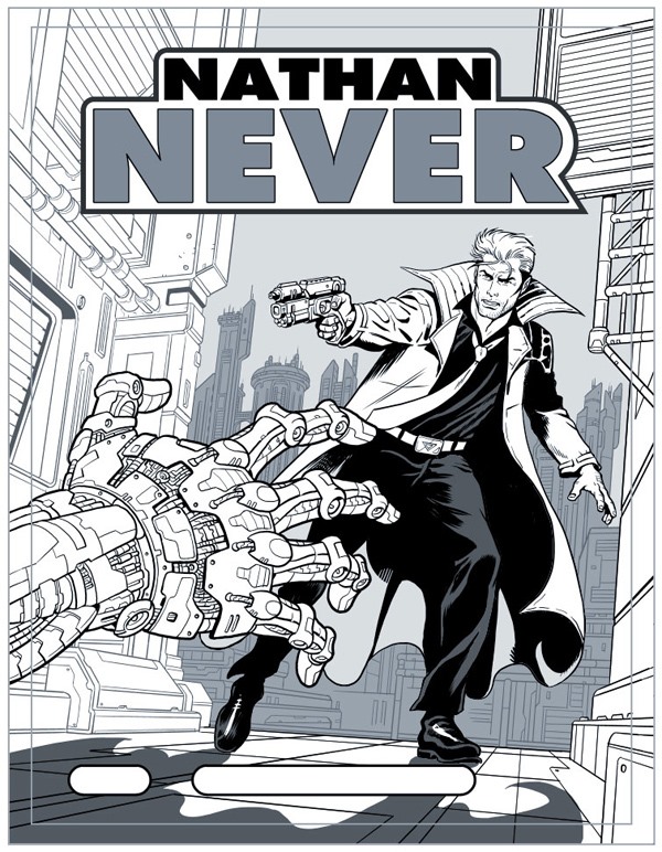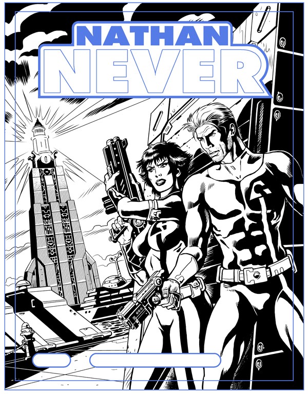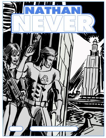 Dipende dalle storie. Tenendo però presente, per quanto può sembrare banale, questa formula di base: Nathan Never è un fumetto d’avventura fantascientifica della Bonelli. Quindi l’illustrazione deve comunicare questi semplici concetti. Elementi fantascientifici (tecnologie, personaggi, sfondi), l’eroe protagonista dell’avventura, lo stile Bonelli. Riguardo quest’ultimo punto è facile fare l’equazione Bonelli uguale Tex (o Zagor), quindi in questo senso possiamo dire che cercheremo di mantenere un’impostazione vicina allo stile “classico” della casa editrice, anche per quanto riguarda i colori, che sono opera del bravissimo Gianmauro Cozzi, già autore delle cover di Greystorm, il quale ha piena autonomia (direttive e supervisione di Serra a parte, ovviamente) nell’impostazione della colorazione.