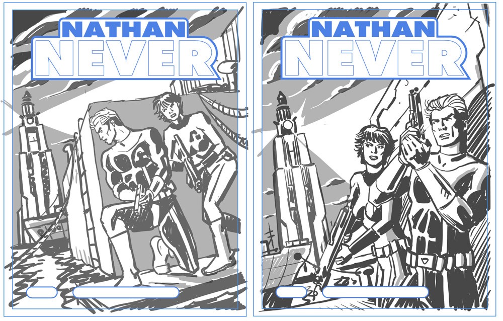 Non credo che siano necessari cambiamenti per rendere le diverse tematiche fantascientifiche presenti negli albi. Nathan Never dopo vent’anni è senza alcun dubbio il più importante e longevo rappresentante della fantascienza a fumetti made in Italy. Gli autori hanno saputo dare alla serie e ai personaggi caratteristiche e personalità che permettono di amalgamare e alternare i vari generi in maniera armonica e naturale. Nathan può passare dalle battaglie nello spazio ai problemi sociali delle città post-apocalittiche rimanendo sempre se stesso. Graficamente, Castellini tendeva più al supereroistico e all’azione, mentre De Angelis ha realizzato splendide copertine d’atmosfera. Idealmente, lo splendido lavoro di questi autori ci ha mostrato le due anime che da sempre coesistono nel personaggio; spero di riuscire a disegnare un Nathan che sappia incarnare indifferentemente queste anime, catturando e proponendo in copertina le emozioni suggerite dalla storia all’interno dell’albo.