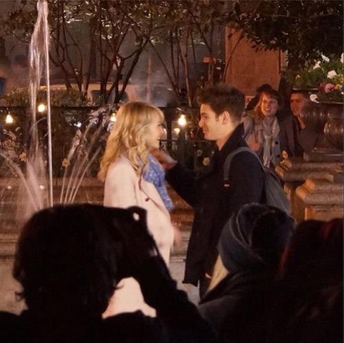 A comparire invece sul set della Union Station, sono stati il protagonista Andrew Garfield e la co-protagonista Emma Stone, impegnati in una sequenza nei ruoli di Peter Parker e Gwen Stacy, in una versione abbastanza affiatata in quello che a molti osservatori è sembrato un vero e proprio appuntamento.