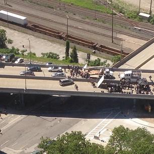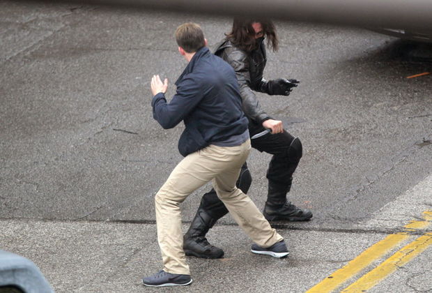 Nuove parti della stessa sequenza sono poi state filmate anche mercoledì, quando alcuni dei personaggi principali, Vedova Nera e Soldato D’Inverno, sono saltati giù dal cavalcavia della West Shoreway, mentre nella strada sottostante alcune comparse nelle vesti dei passeggeri del metro bus ribaltato, fuggivano in preda al panico. In questo frangente, la Vedova Nera si spinge all’inseguimento del Soldato D’Inverno.