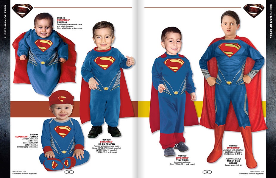 “Rubie è entusiasta di sviluppare nuovi costumi e accessori per Man of Steel”, ha invece aggiunto Howard Beige, Vice Presidente di Rubie. “Ampliando la nostra collezione di Superman siamo in grado di offrire ai bambini e anche agli adulti la possibilità di vestirsi come il loro super eroe o cattivo preferito in questa stagione di Halloween! Senza dubbio, Superman sarà il costume più ambito dell’anno”.