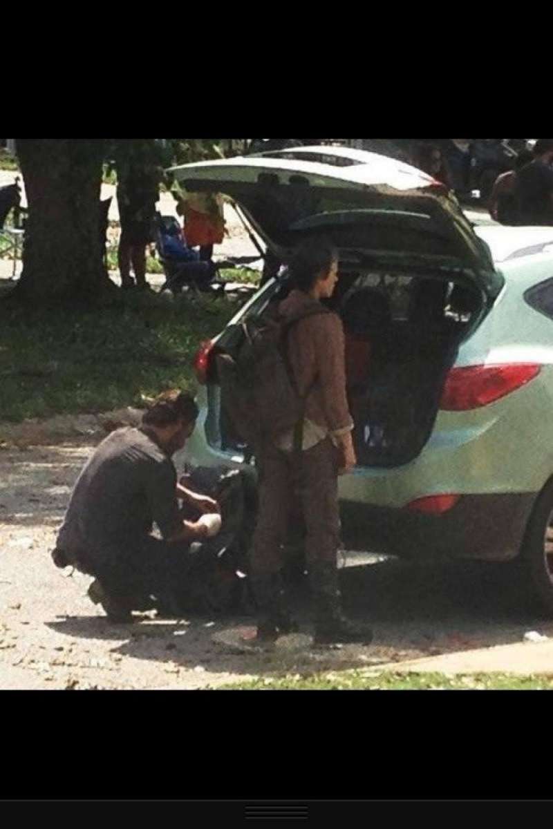 Diffuse alcune immagini scattate sul set in Georgia della quarta stagione di The Walking Dead, che mostrano gli attori Andrew Lincoln e Melissa McBride intenti a filmare una sequenza.