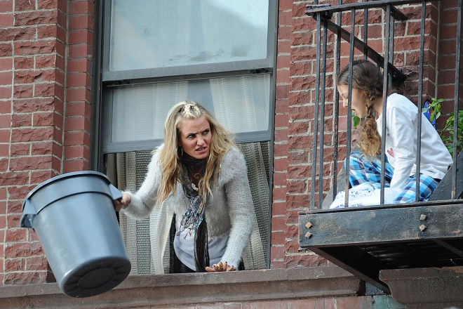 Continuano a New York, e per la precisione nella zona di Harlem, le riprese di Annie, l’adattamento cinematografico dell’omonimo musical basato sulla celebre striscia di Harold Gray. Nei giorni scorsi la lavorazione ha visto protagoniste la giovane protagonista Quvenzhane Wallis e l’attrice Cameron Diaz, le quali hanno girato una sequenza di cui potete vedere alcune immagini di seguito, in cui la burbera matrona dell’orfanotrofio Miss Hannigan non pare rispettosa dell’igiene pubblico.