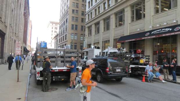 Un parcheggio di fronte al Palazzo di Giustizia degli Stati Uniti Theodore Levin su Lafayette è stato invece chiuso per ordine della polizia.
