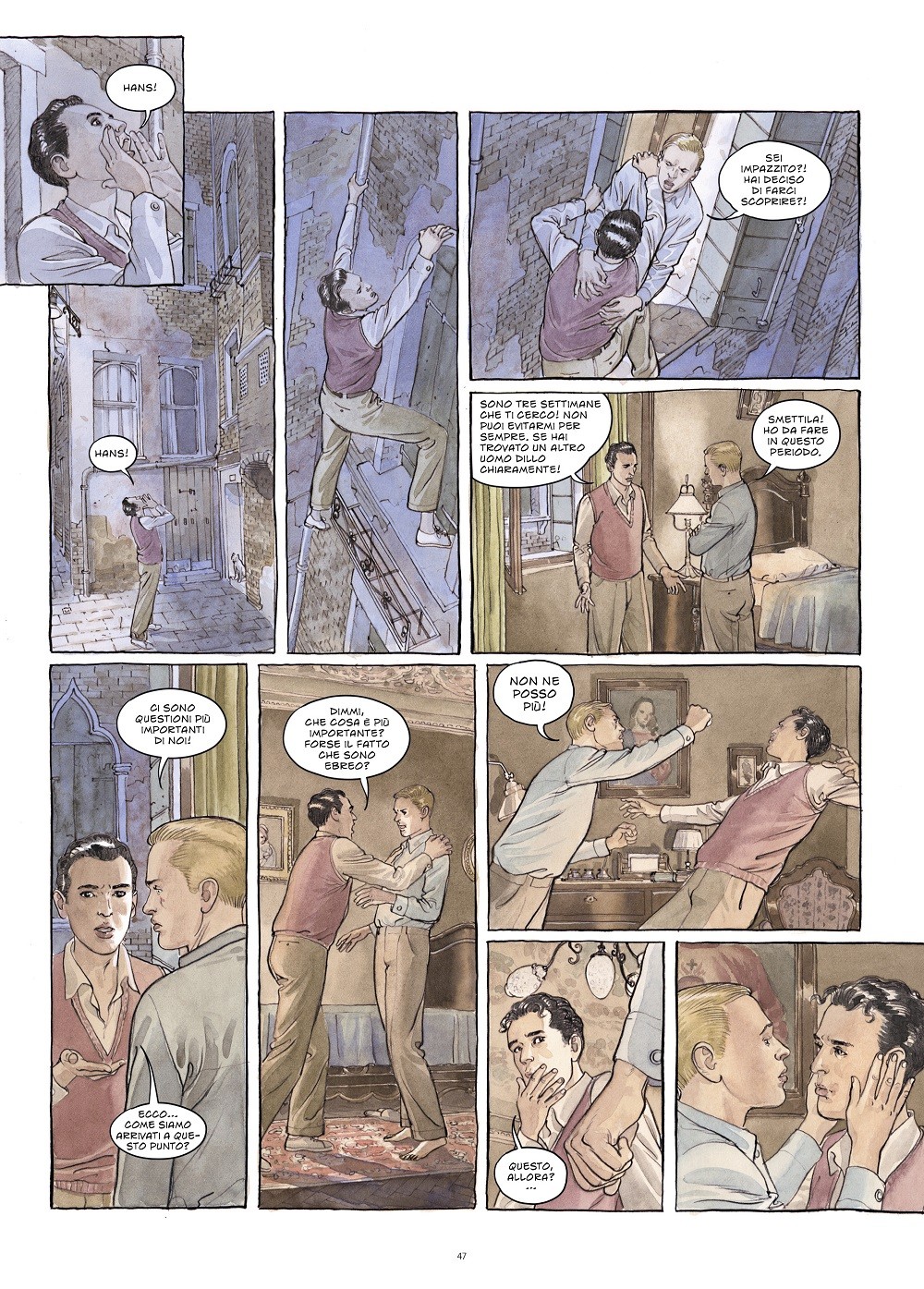 amanti, ben presto costretti ad affrontare, in sé stessi e nel loro ambiente, il tabù e lo stigma sociale dell’omosessualità. Jacopo è ebreo, Hans è tedesco: entrambi sono figli di quell’élite che, per interesse, favorì l’ascesa del fascismo in Italia.