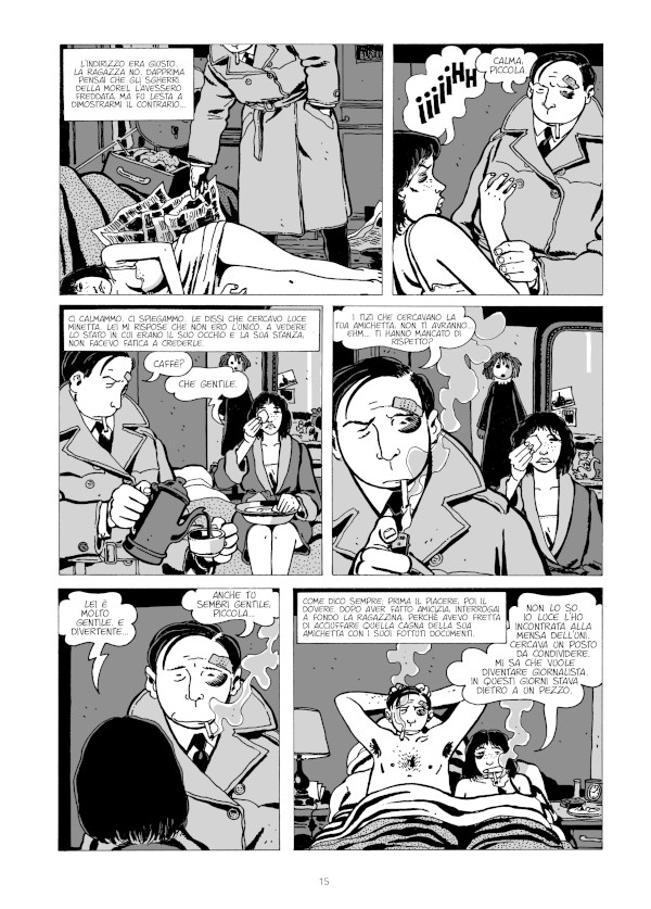 Con i suoi disegni raffinati ed essenziali, Tardi ricrea alla perfezione le atmosfere oscure e il mondo violento di Manchette, un mondo popolato da personaggi che si possono definire “marci”, nessuno escluso. Ma è anche la gelida vena anarchica, l’ironica e sovversiva critica ad ogni potere costituito presente nei romanzi di Manchette, a rivivere in queste spettacolari tavole a fumetti in bianco e nero. Tavole nelle quali risuona la scrittura chirurgica dell’autore che ha reinventato il noir francese: secca, sincopata e dai ritmi quasi jazz, in cui nessuna parola è superflua e le azioni definiscono la psicologia dei personaggi. Tardi non si limita a illustrare, ma interpreta, amplifica, fa risuonare queste opere chiave del noir contemporaneo.