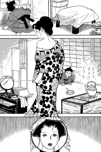 Si tratta di nove storie, otto brevi e una divisa in sette capitoli (che dà il titolo alla raccolta), che coprono un arco di tempo che va dal 1966 (a quanto pare il primo lavoro pubblicato dell’artista) fino al 1972 e che permettono di osservare già una certa evoluzione nel tratto di Ikigami. Se l’approccio al realismo è evidente sin dai lavori più datati, il suo disegno mostra un’impronta più classica nelle sue prime opere: corpi e scenografie sono dettagliati e rigorosi, mentre i volti hanno una deriva grottesca e più caricaturale. Presto però il suo tratto si fa sempre più personale e sempre più riconoscibile.