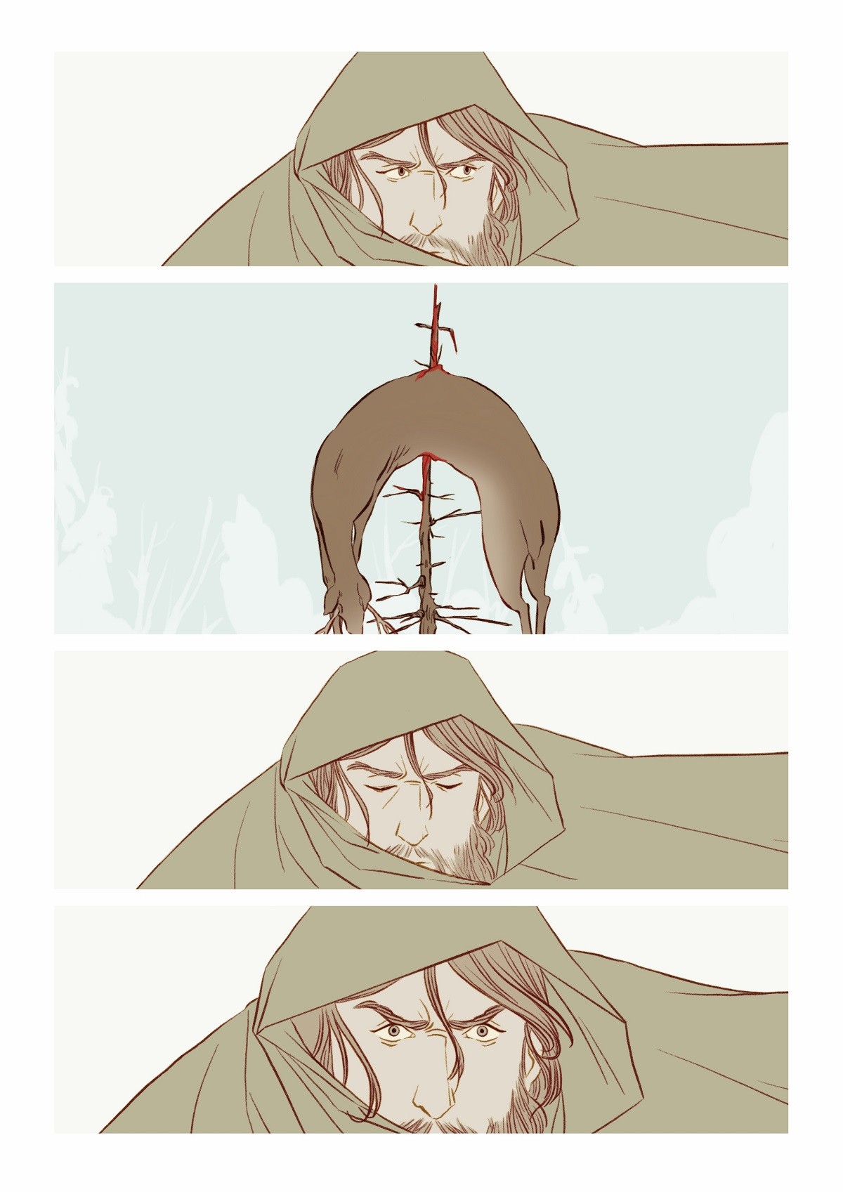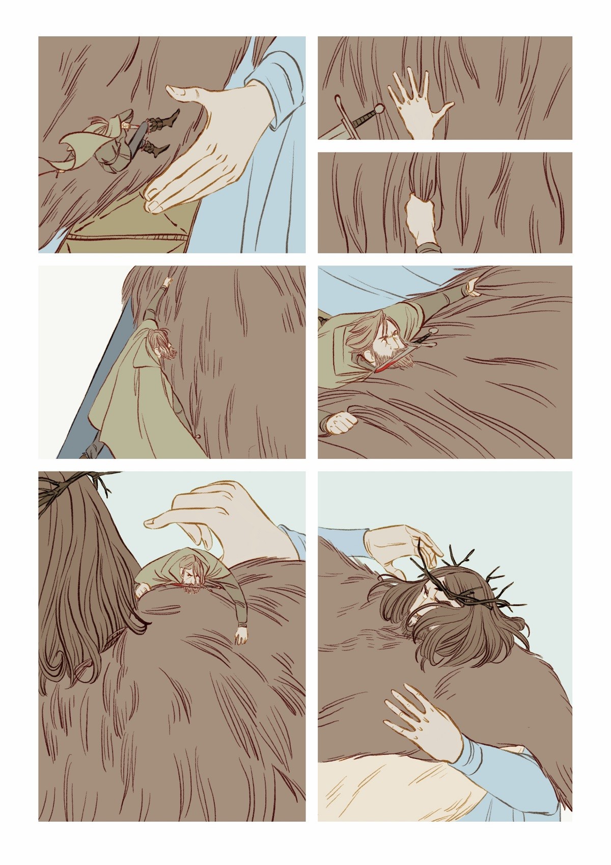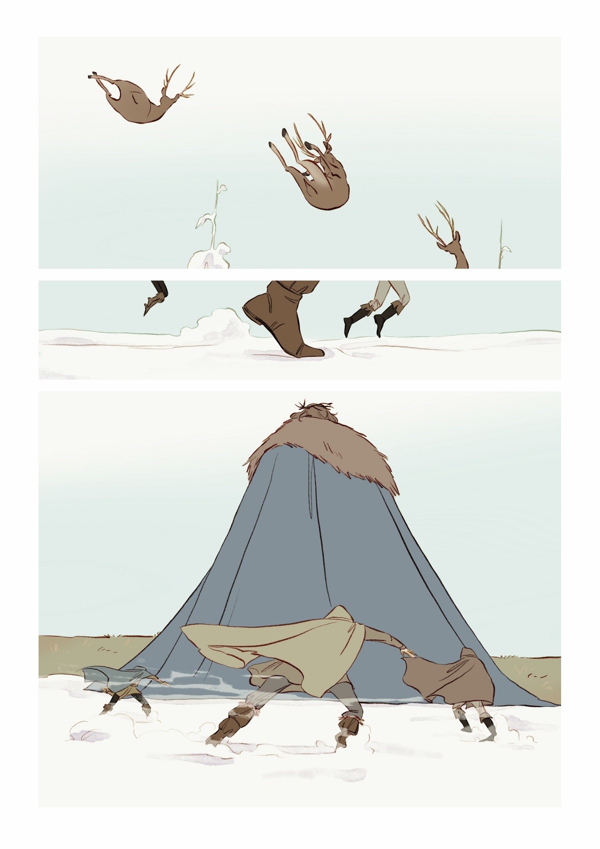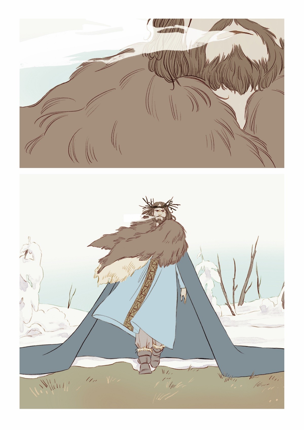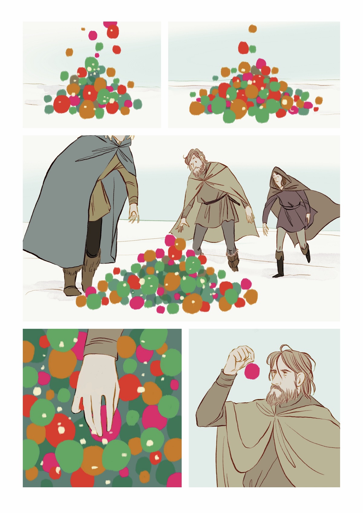 E visto che l’idea è piaciuta anche a lei, eccoci qui dunque, a presentarvi una racconto di Natale forse diverso da quello che potete solitamente aspettarvi per questo periodo. E’ un fumetto a tratti crudo e struggente, ma in cui è però ben radicata la speranza, quel sentimento che forse può sopravvivere anche alle prove più dure. I disegni eleganti, tanto moderni quanto legati alla più classica tradizione fiabesca, ci portano nel centro di una battaglia a prima vista impossibile da vincere, contro un metaforico carnefice, potente e impietoso. Freddo e inarrestabile. Ma il Natale nasconde una magia potente che scorre nel sangue dei caduti…