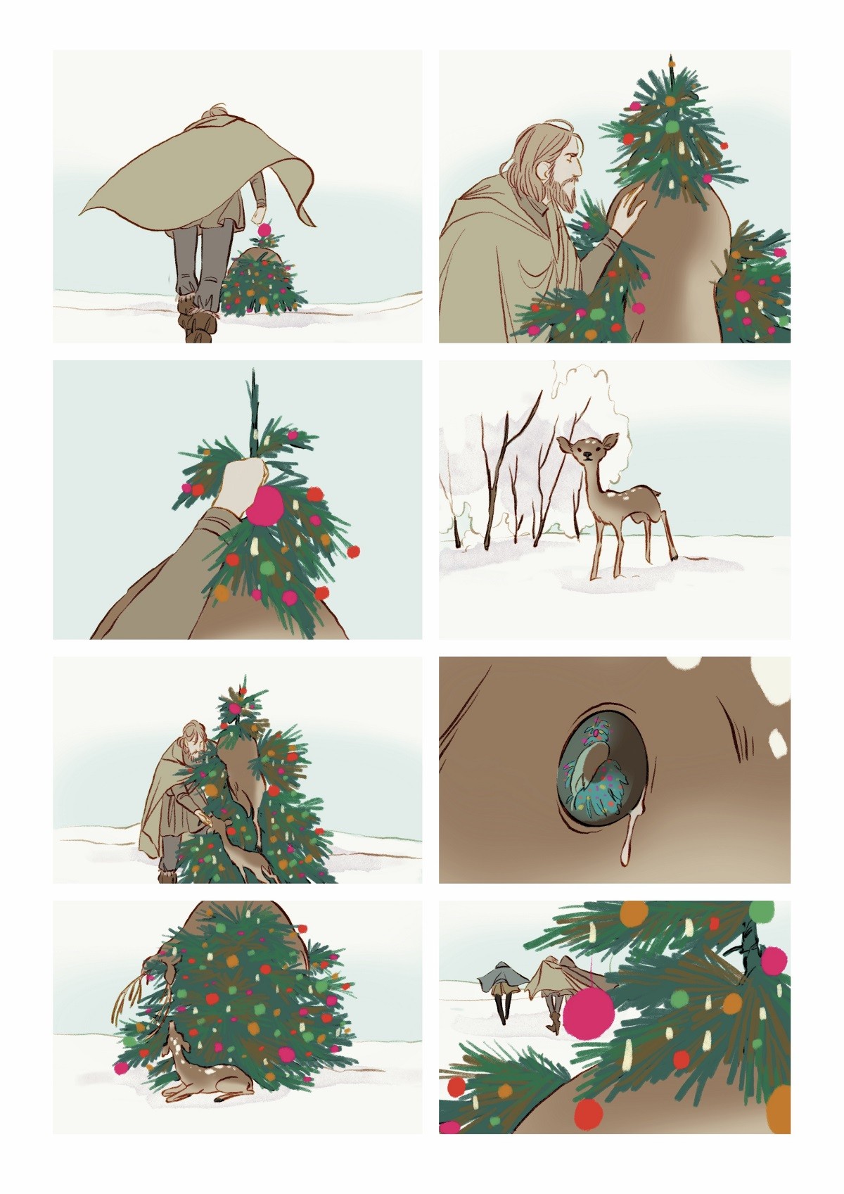 Amore a prima vista. E’ quello che ha provato la redazione de Lo Spazio Bianco dopo la prima lettura di Christmas Tree, il fumetto breve realizzato da Rosalia Radosti e messo a disposizione per la lettura gratuita sui profili social dell’autrice. Un’opera muta talmente bella e ben realizzata che ci è venuto spontaneo chiedere a Rosalia se volesse proporre il suo fumetto anche sulle pagine del nostro sito.
