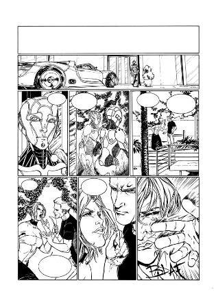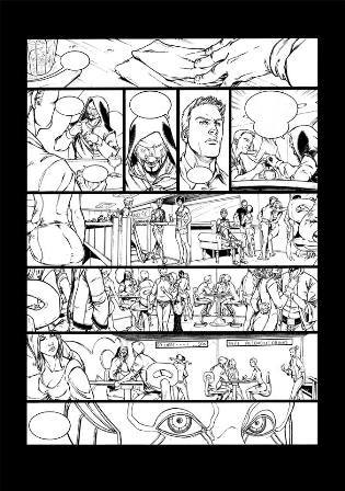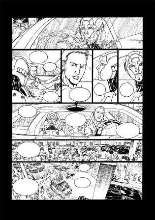 Utilizzo un metodo di lavoro che molti potrebbero definire balordo. Vedo molti colleghi e amici disegnatori che partono dallo storyboard della pagina, poi passano al layout definito, poi al clean-up del layout, poi al clean-up del clean-up e infine una spuntatina di sopracciglia al clean-up, prima di andare sul definitivo. Io, forse sbagliando, utilizzo un approccio molto rapido. Dopo aver letto la sceneggiatura, butto giù degli storyboard delle pagine (cinque per volta, di norma) veramente imbarazzanti, ma che per mia fortuna sono sempre andati bene agli sceneggiatori con i quali ho lavorato! Poi, una volta approvati gli storyboards, passo ad organizzare la documentazione necessaria, cercando foto di riferimento e modelli 3D, se necessario. Dopo aver impostato la griglia delle vignette sul foglio definitivo, monto in digitale e stampo su di esso eventuali ricostruzioni in 3D che ho fatto e passo direttamente alle impostazioni a matita di tutta la pagina. Una volta ottenuto un risultato soddisfacente, vado giù di inchiostro a pennello e via, verso l’infinito e oltre!