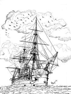Il confronto è stato facile. Io amo le storie di mare, in particolare sono appassionato di storie di pirati. Il primo volume è stato magnifico, perché ho potuto disegnare il periodo d’oro dei corsari francesi e mi sono molto divertito. In linea di massima la realizzazione è diventata sempre più complessa con i numeri a venire, perché in seguito gli armamenti e le navi stesse sono cambiate nel corso della storia, e sono diventate molto articolate e quindi più complesse da disegnare.
