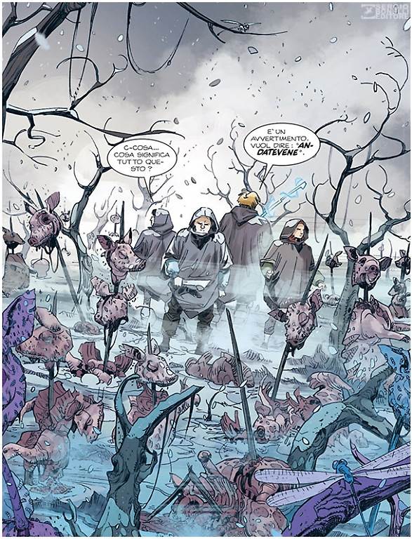 coverRingo9Lontani dagli sguardi dei Corvi ma non dalle insidie del viaggio in un’Italia post-apocalittica sempre meno accogliente e rassicurante, Ringo, Nuè, Seba e Rosa incontrano sulla loro strada un nuovo ostacolo sotto forma di una comunità retta da un folle santone e dedita a pratiche disumane e violente.